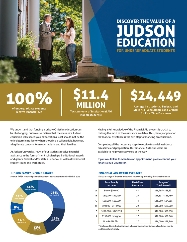 Financial Aid Flier – This flier was used with an accompanying email campaign to inform families of the financial affordability of a Judson education. This was created with the Financial Aid Office staff and is updated annually.